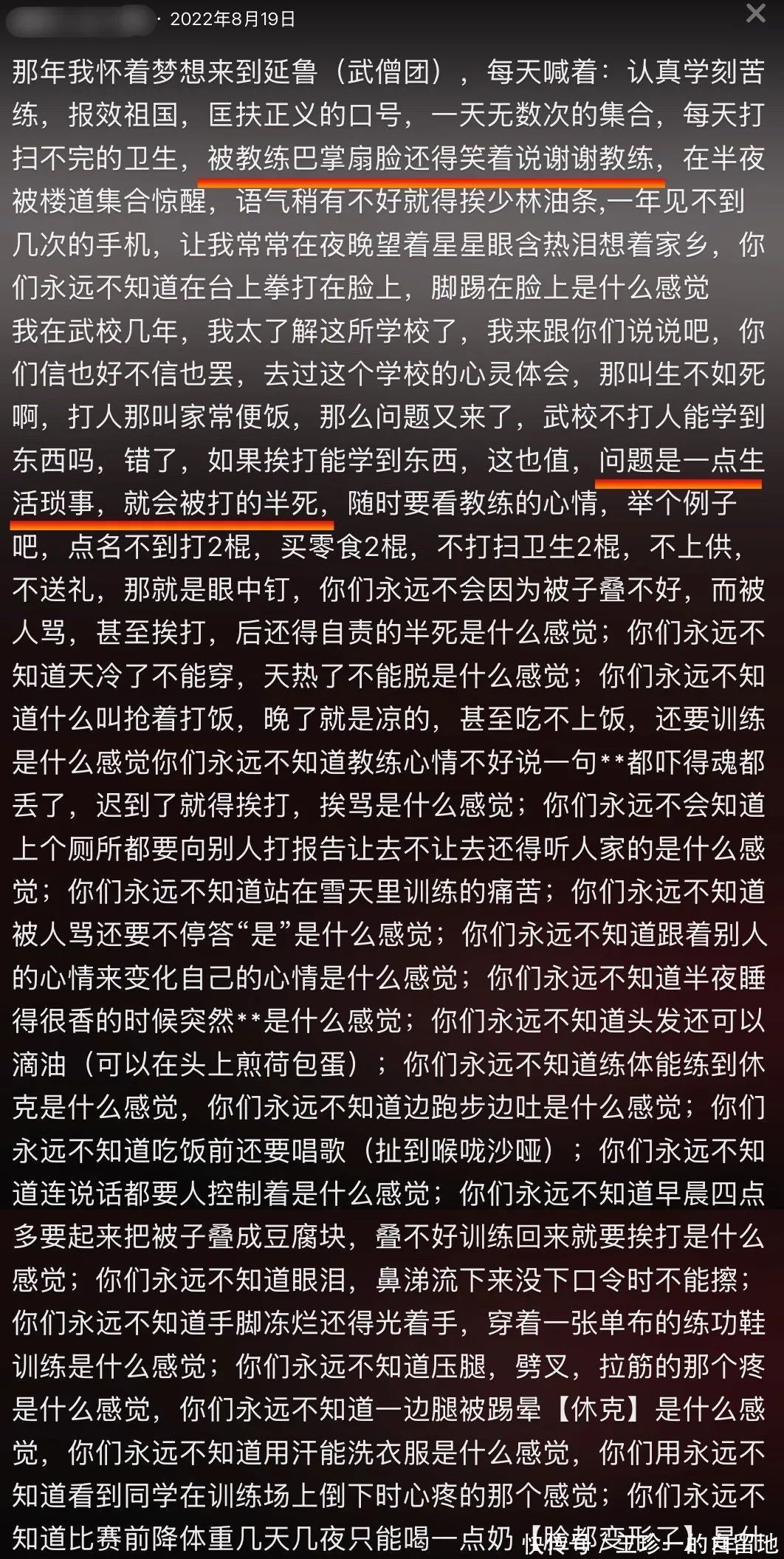 值得一提的是,有少林延鲁武校的学生发文称,该武校科罚终点严格,学生相通挨打,如果家长思送孩子去该校,如故要好好筹商一下我方和孩子能不可受得了该校的科罚表情。
