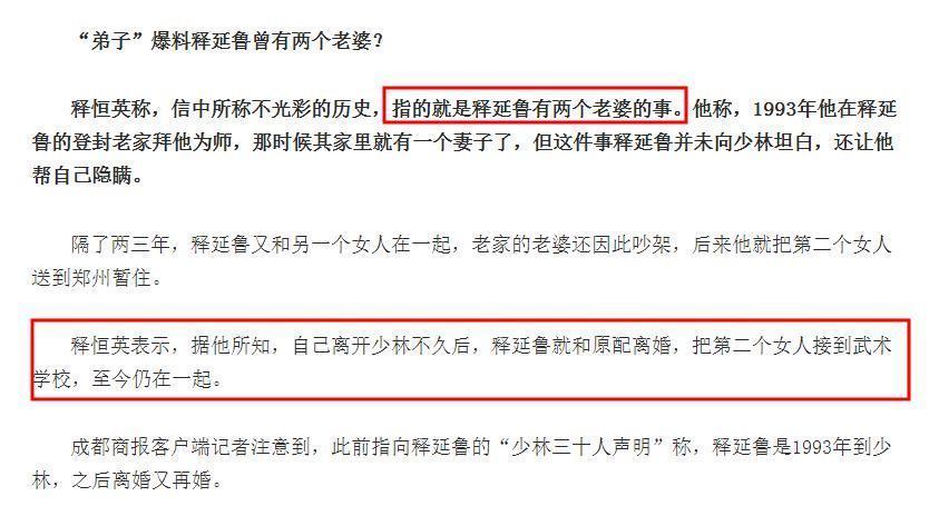 那时释延鲁的弟子还爆料说,1993年的技能释延鲁在闾里就有了浑家,那时还条款门徒向少林寺隐私。