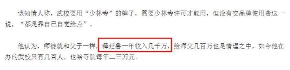 10年前,释延鲁的“师昆季”曾爆料说释延鲁办武校一年能赚几千万。
